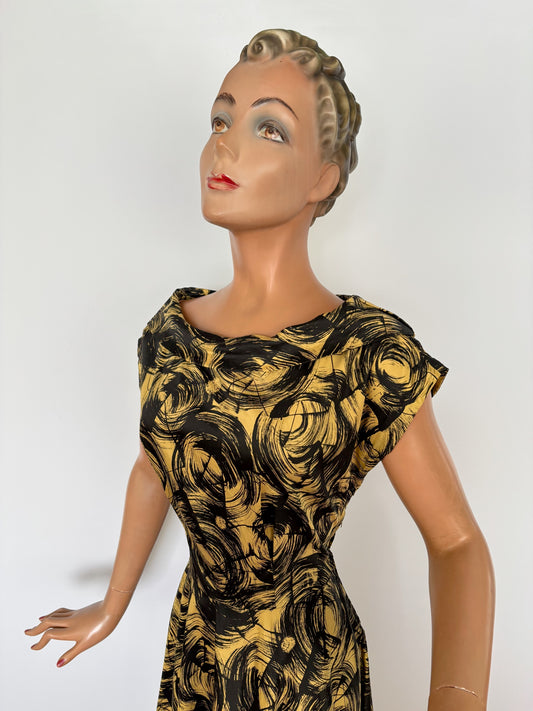 M | 1950s Cotton Poplin Swirl Print Dress