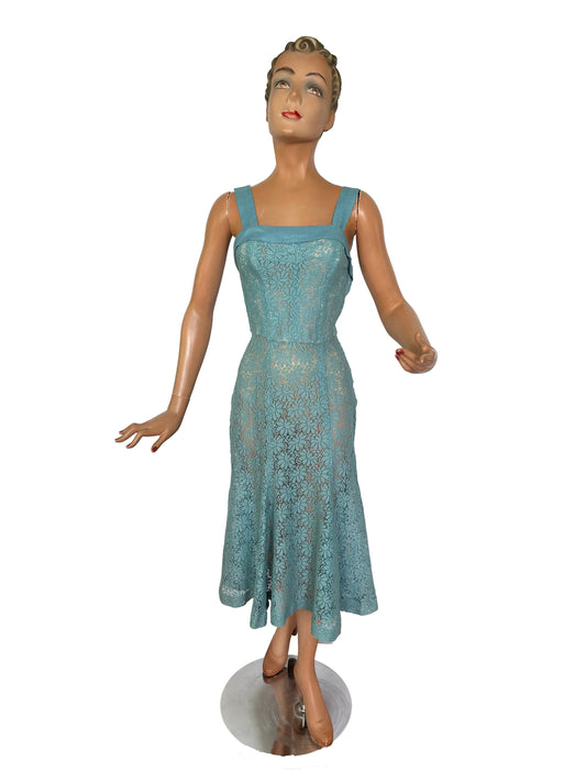 XS | 1950s Tabak of California Lace and Linen Dress and Bolero Set