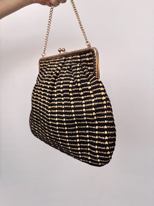 1950s Black And Yellow Wool Evening Bag With Chain Strap