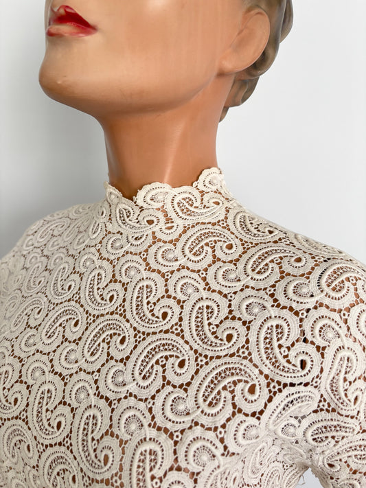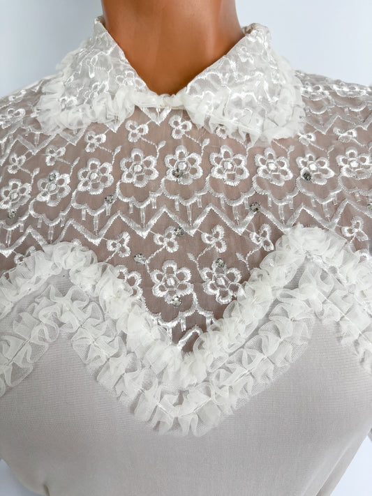 S/M | 1950s 1960s Mark Lee Original Sheer Blouse with Embroidery And Rhinestones