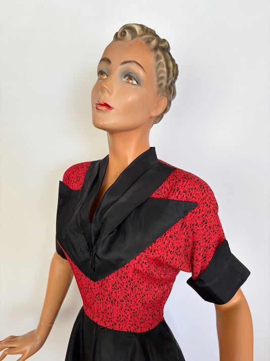 XS | 1940s Style Novelty Print Peplum Dress
