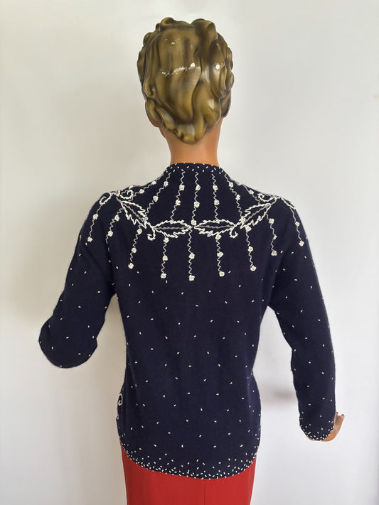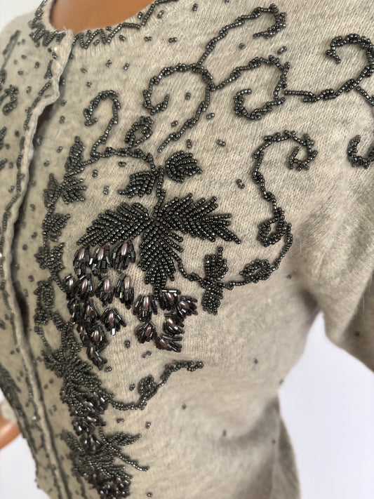 S | 1950s/60s Beaded Wool Cardigan Hong Kong