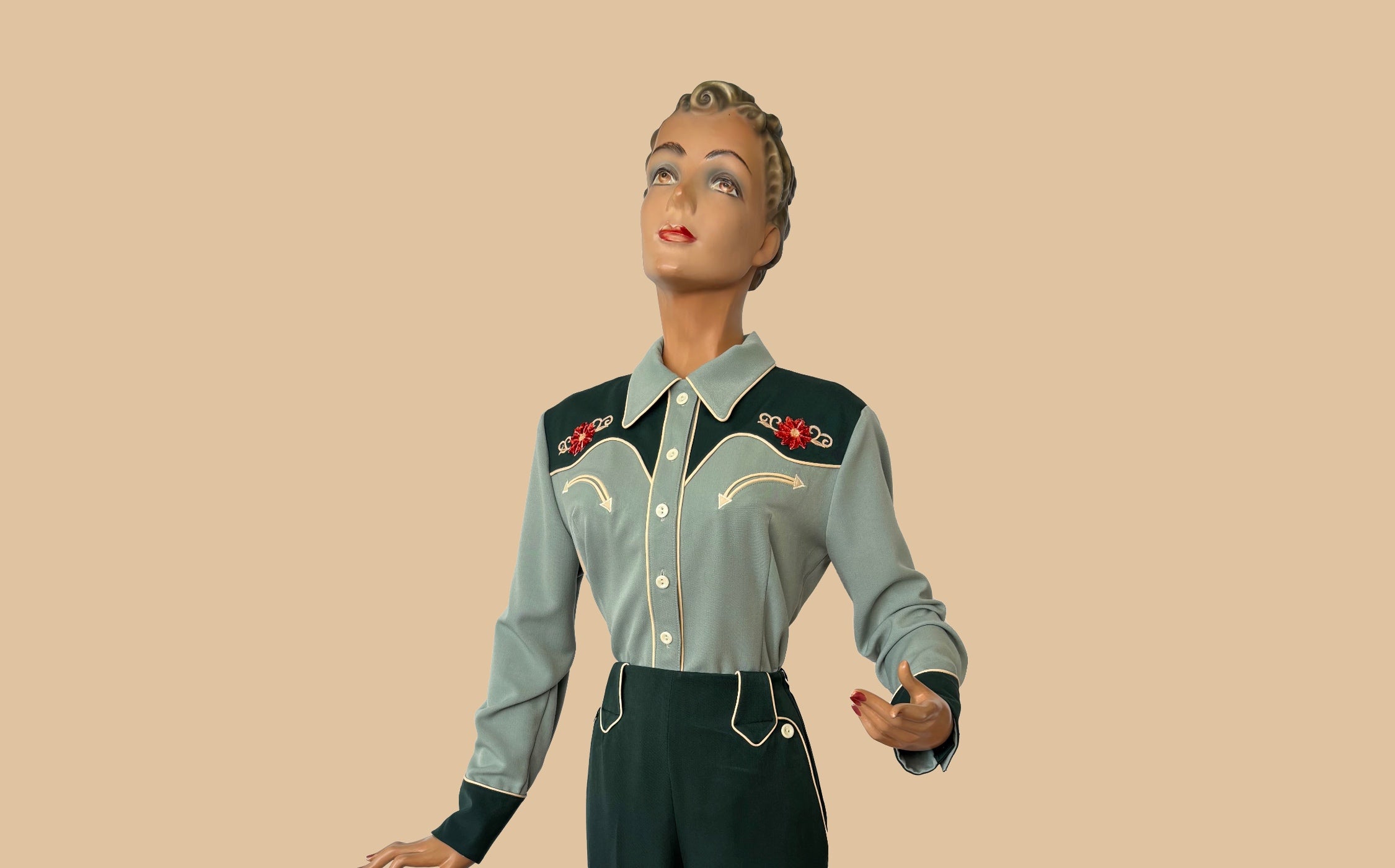 Mary Lou 1940s Western Blouse Green - Made to Order