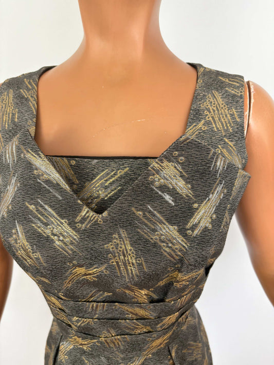 M | 1950s/60s Magnita Grey and Gold Cocktail Dress