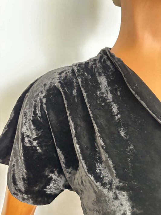 XXS/XS | 1930s/1940s Black Crepe Dress With White Organza Trim