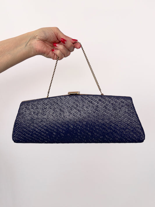 1950s Black And Yellow Wool Evening Bag With Chain Strap