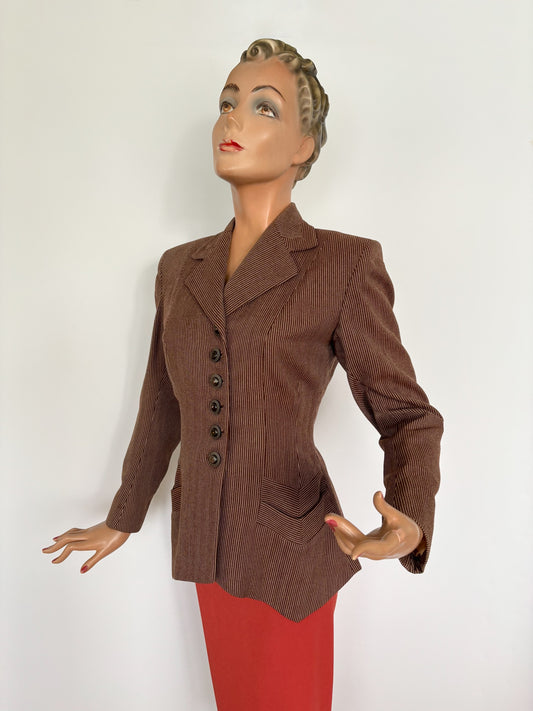 XS/S | 1950s Beaded Wool Gabardine Jacket Suitmaker Montreal