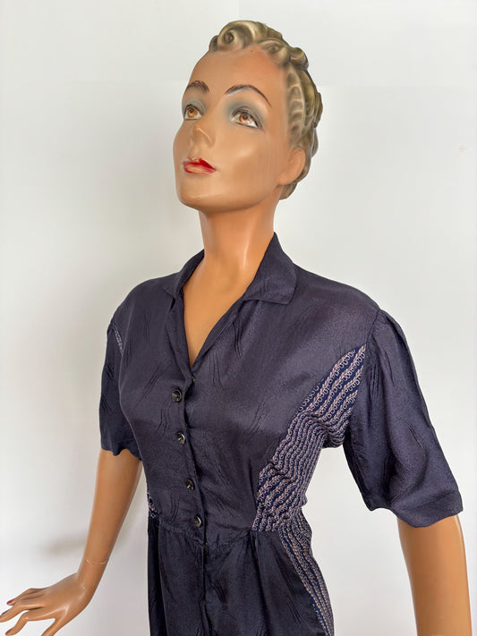 M | 1940s Navy Blue Silk Blouse – Royal Lady