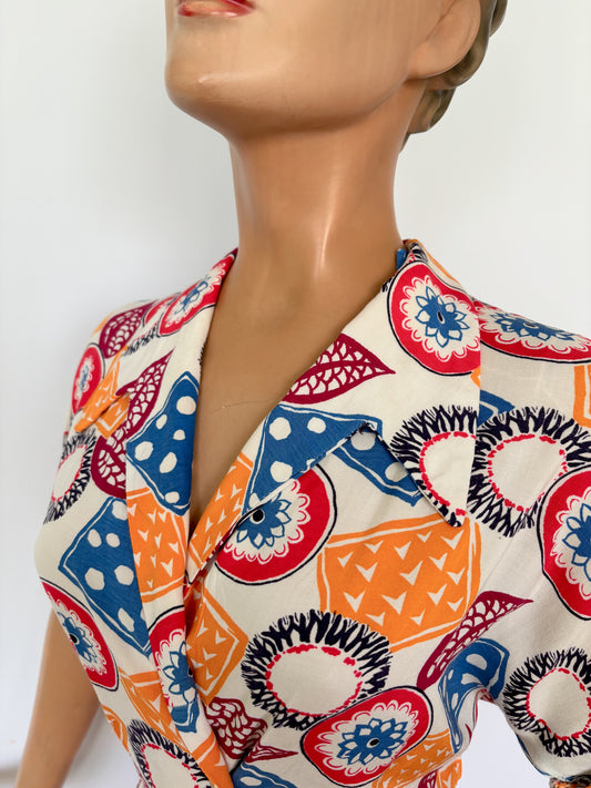XS/S | 1940s Rayon Fantasy Print Novelty Dress