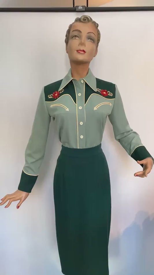 June 1940s Western Blouse Red - Made to Order
