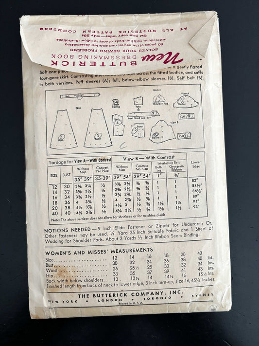 1943 Size 18 Women's Dress with Flared Skirt - Butterick 4439 Sewing Pattern