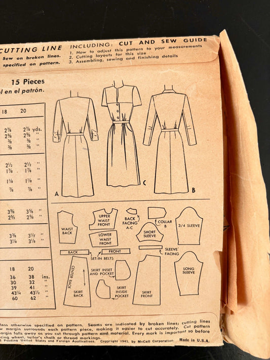 1940s Size 14 Dress – McCall 6271 Sewing Pattern