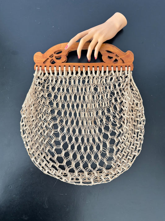 Vintage Homemade Jigsaw Hand Knotted Netted Shopping Bag