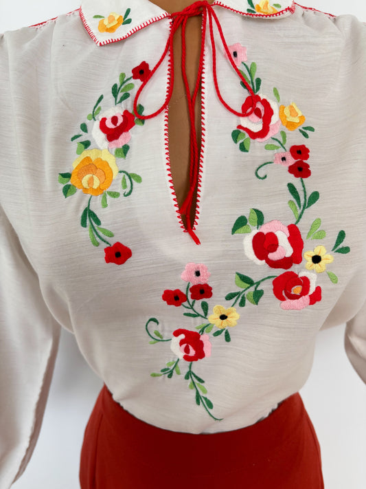 M/L | 1970s Hungarian Embroidered Blouse