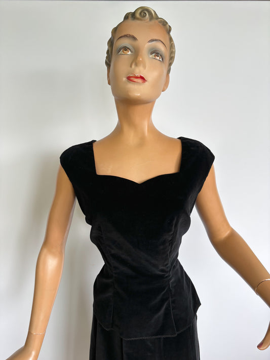 S/M | 1950s Black Cotton Velvet Two Piece Skirt Set – Walk by Charles Inc.