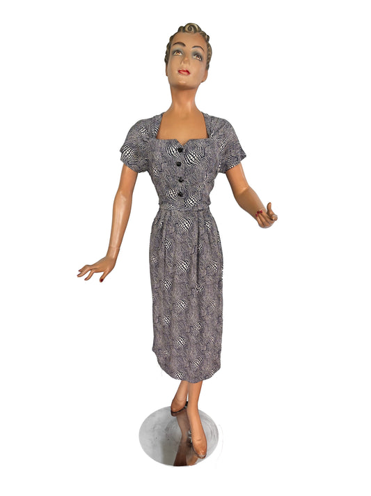 XS/S | 1940s Three-Piece Set in Navy and White Crepe Rayon