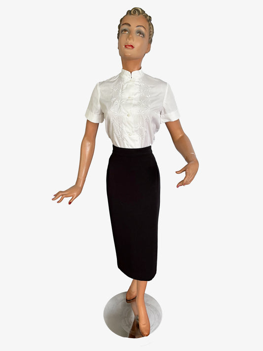 S | 1950s Mandarin Collar Embroidered Cotton Blouse