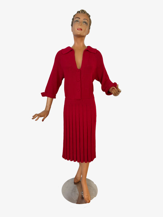 M/L | 1940s/1950s Red Knit Dress