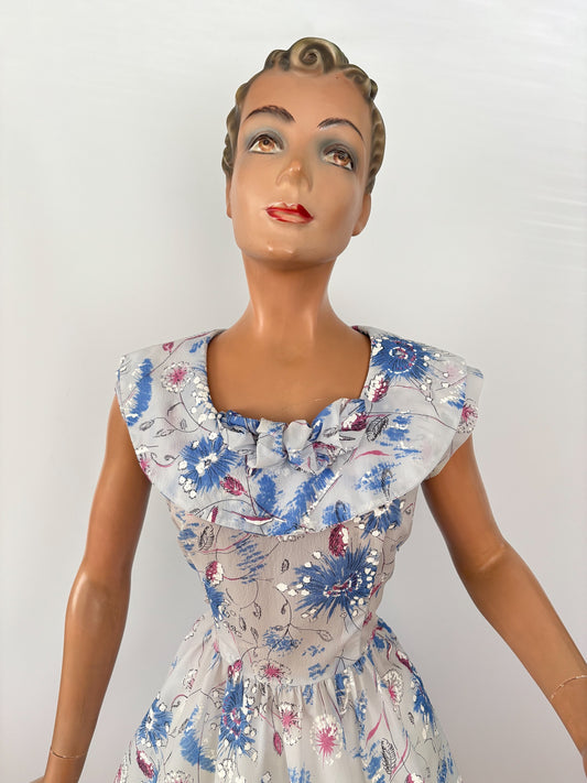 S/M | 1950s/60s Floral Cotton Dress Sissi Leninki