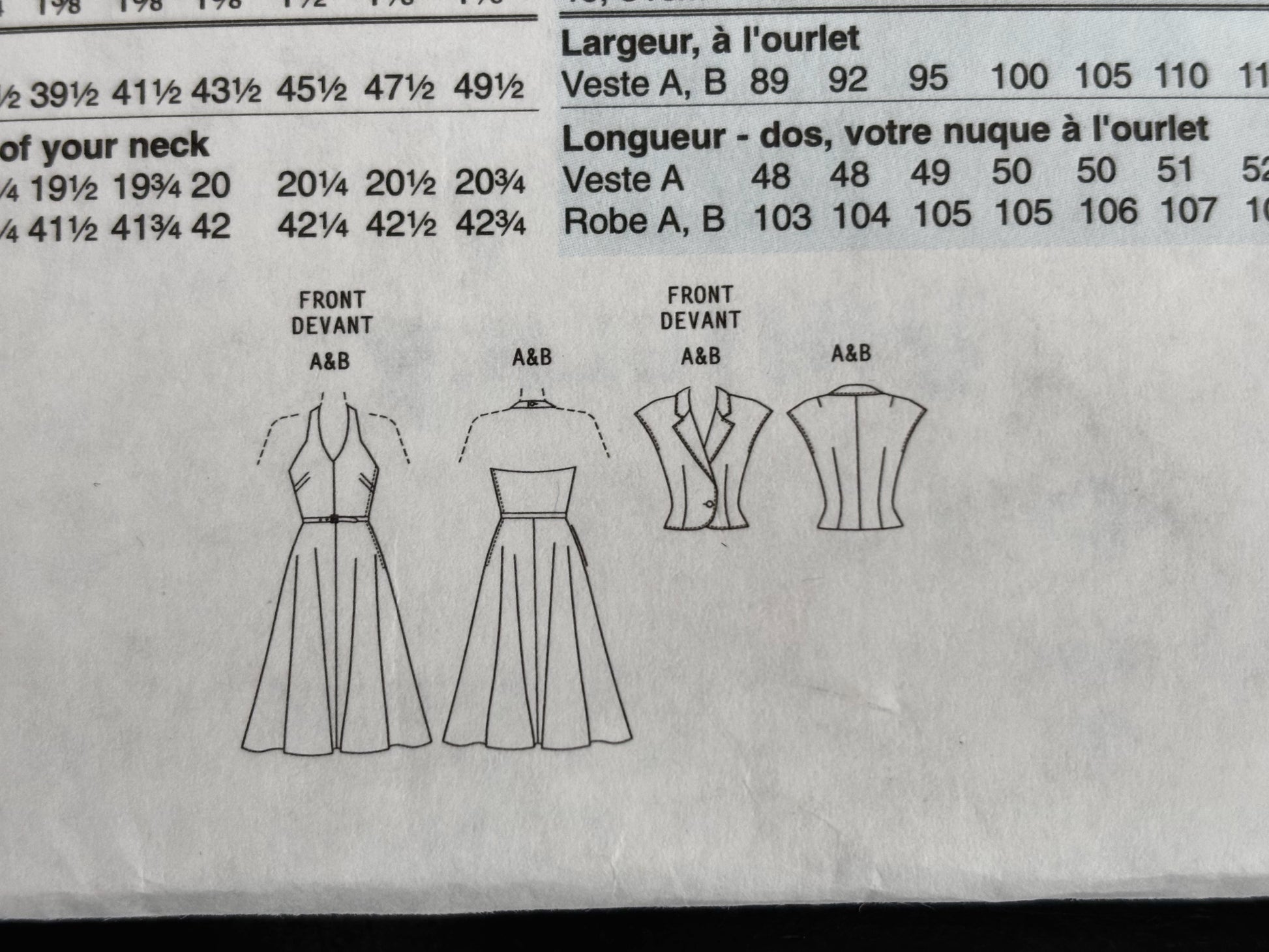 Sewing pattern for a 1947 jacket, dress and belt.