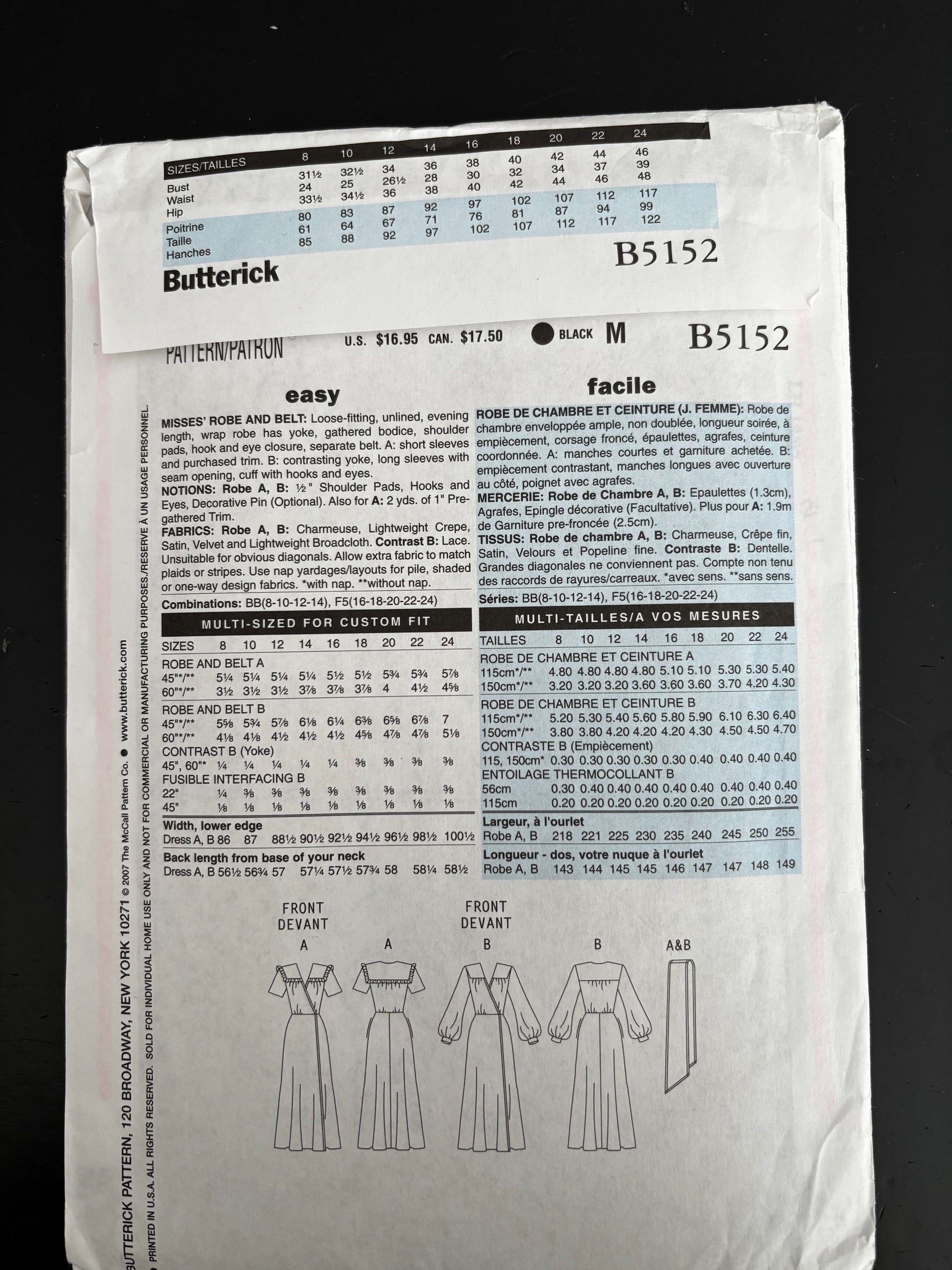 1948 Retro Butterick B5152 Sewing Pattern Misses' Robe and Belt - Sizes 8 - 14