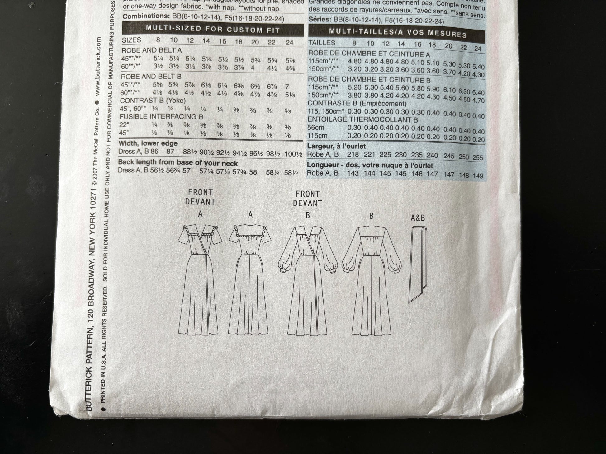 Sewing pattern for a 1948 loose fitting, unlined evening length wrap robe.