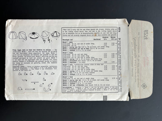 1965 Simplicity 6274 Children's Hats Sewing Pattern - Size 53 1/4 cm Dutch
