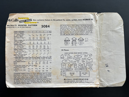 1959 McCall's 5084 Child's Dress and Weskit - Size 4