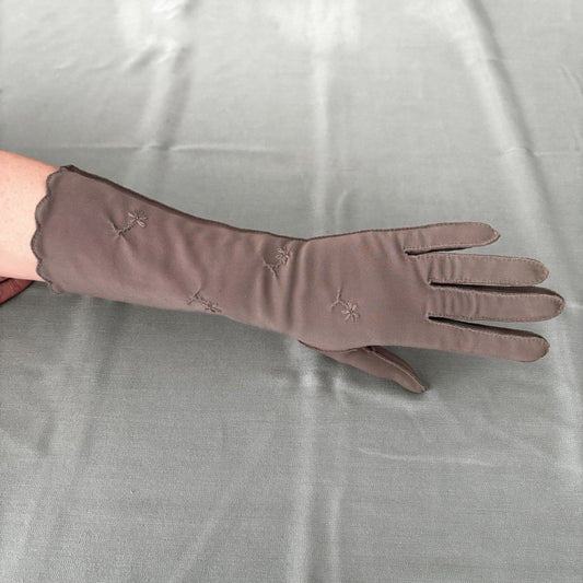 1940/50s Embroidered Scalloped Evening Gloves | Size 6