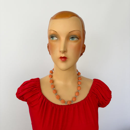 1930s/40s Art Deco Glass Diamond and Carved Beads Necklace