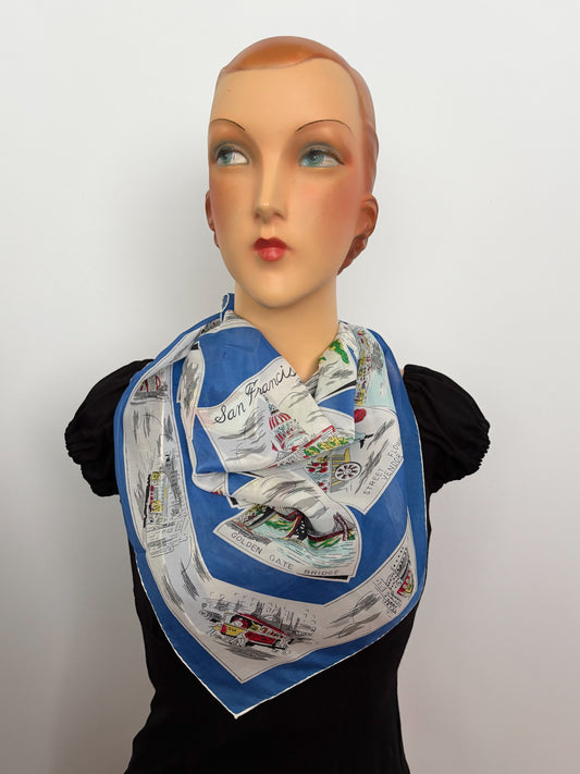 1940s 1950s Silk San Francisco Souvenir Scarf | 66x66 cm