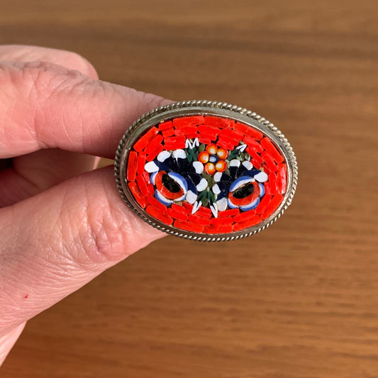 1930s/40s Italian Glass Micro Mosaic Almond Shape Brooch
