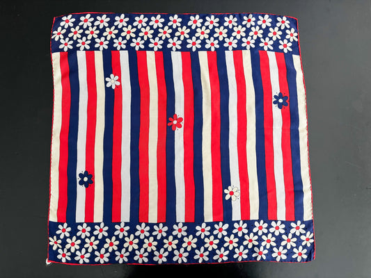 1960s Glentex Silk Rayon Blend Shawl With Patriotic Print | 56x58 cm