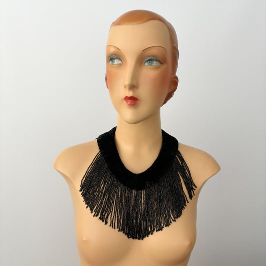 Antique French Jet Glass Seed Bead Velvet Collar Choker