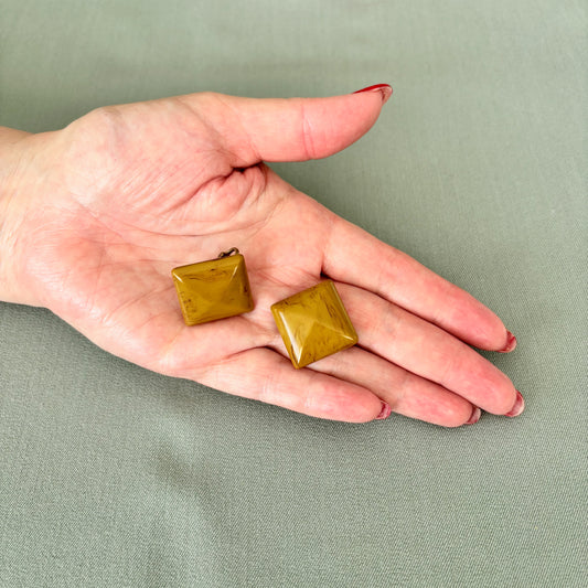 1940s Square Butterscotch Bakelite Screw Back Earrings