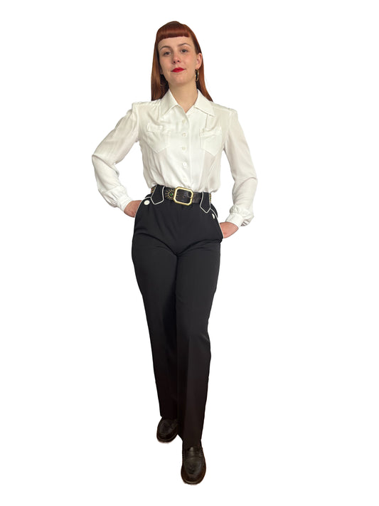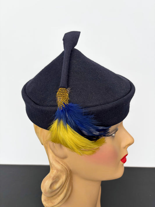 1940s Saks 34th New York Dark Blue Tilt Hat w. Feather Detail