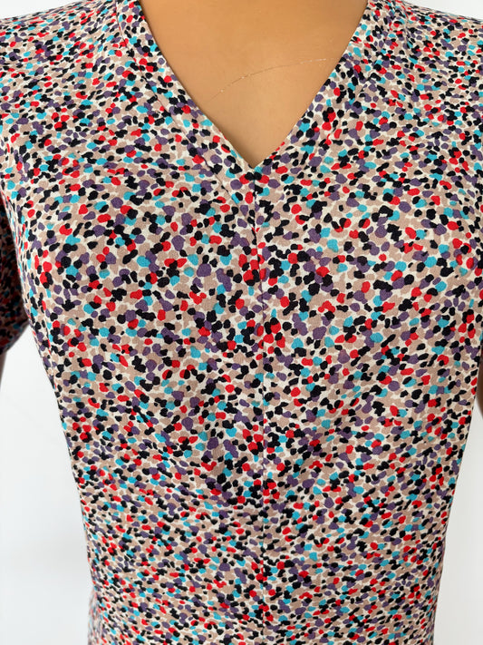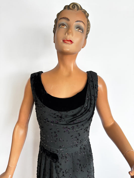 M/L | 50s/60s Couture Dress by Roter, London – Chiffon with Glittering Dots and Velvet Details