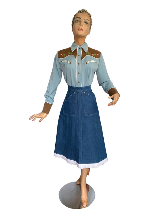Mary Lou 1940s Western Blouse Blue/Brown - Made to Order