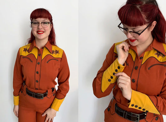 Mary Lou 1940er Westernbluse Rostbraun - Auf Bestellung