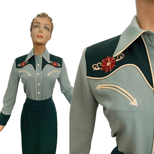 Mary Lou 1940er Westernbluse Grün - Auf Bestellung
