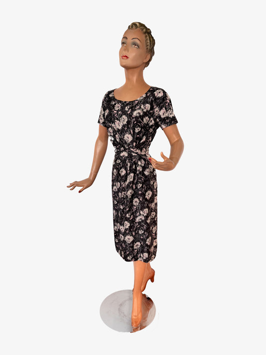 S | 1940s/1950s Black Taffeta Cocktail Dress