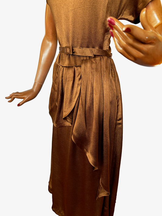 S | 1940s Style Dress Vintage Copper Satin Fabric