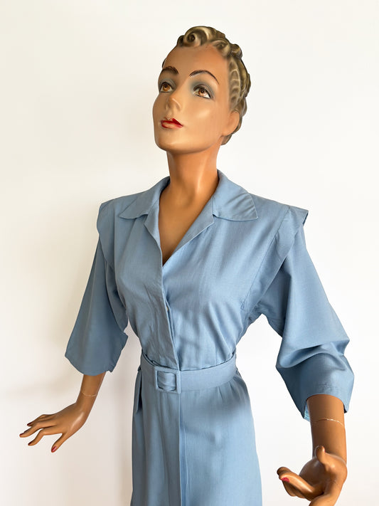 S/M | 1940s/50s Hobbies Lorch of Dallas Light Blue Grey Wool Day Dress