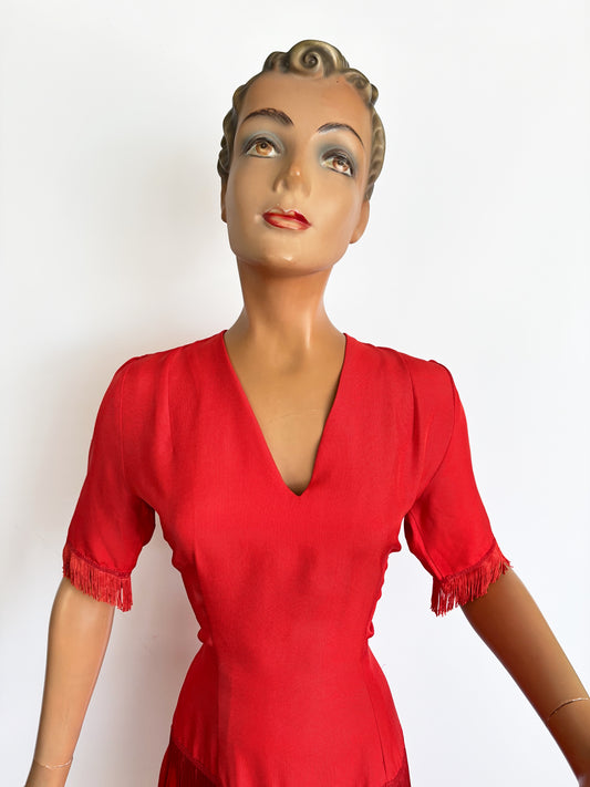 S/M | 1950s Wool Jersey Mesh Soutache Fringe Top