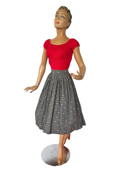 50er Jahre Grauer und rosa Blumenrock | Größe Small/Medium