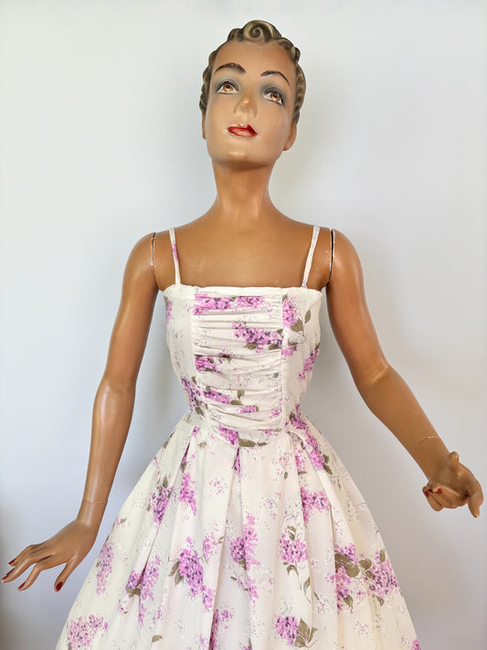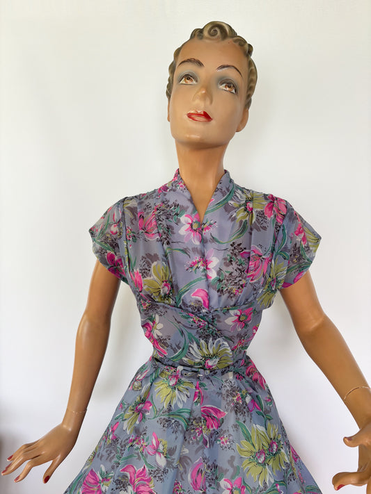 S/M | 1950s Organza Semi Sheer Flower Dress