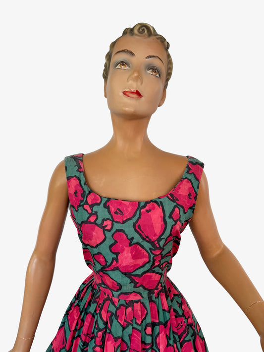 S/M | 1950s/60s Silk Abstract Flower Dress