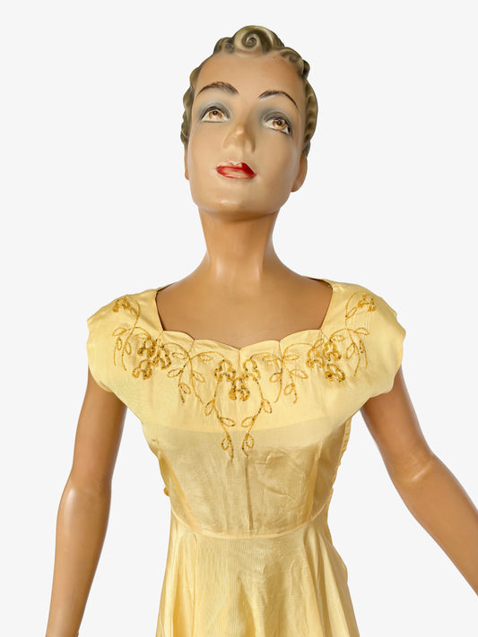 XS | 1940s/1950s Taffeta Beaded Evening Dress