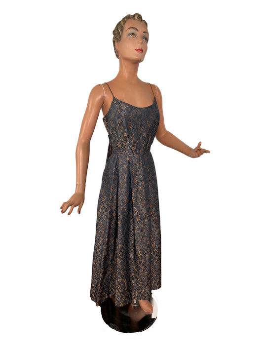 XS | 1950s Jacquard Evening Gown