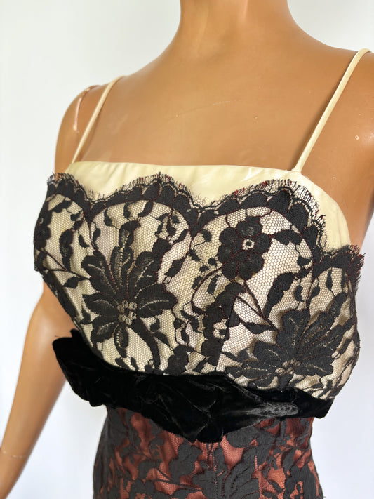 XS | 1950s/60s Lilli Diamond Satin and Lace Dress